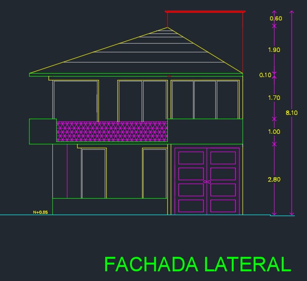 Y para continuar, una detallada vista lateral que nos indica varios otros detalles de esta vivienda.
