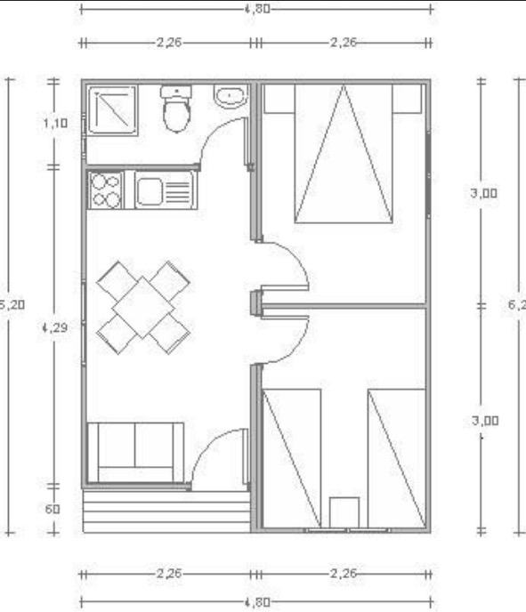 Plano de casa prefabricada 2 dormitorios y 30 m2