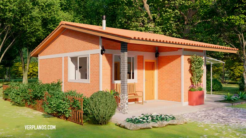 Planos de casa pequeña bonita y económica de 1 piso y 2 dormitorios